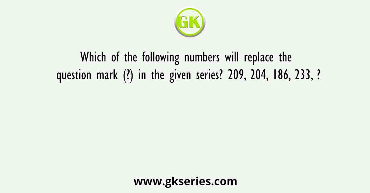 Which of the following numbers will replace the question mark (?) in the given series? 209, 204, 186, 233, ?