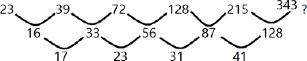 23, 39, 72, 128, 215, ?