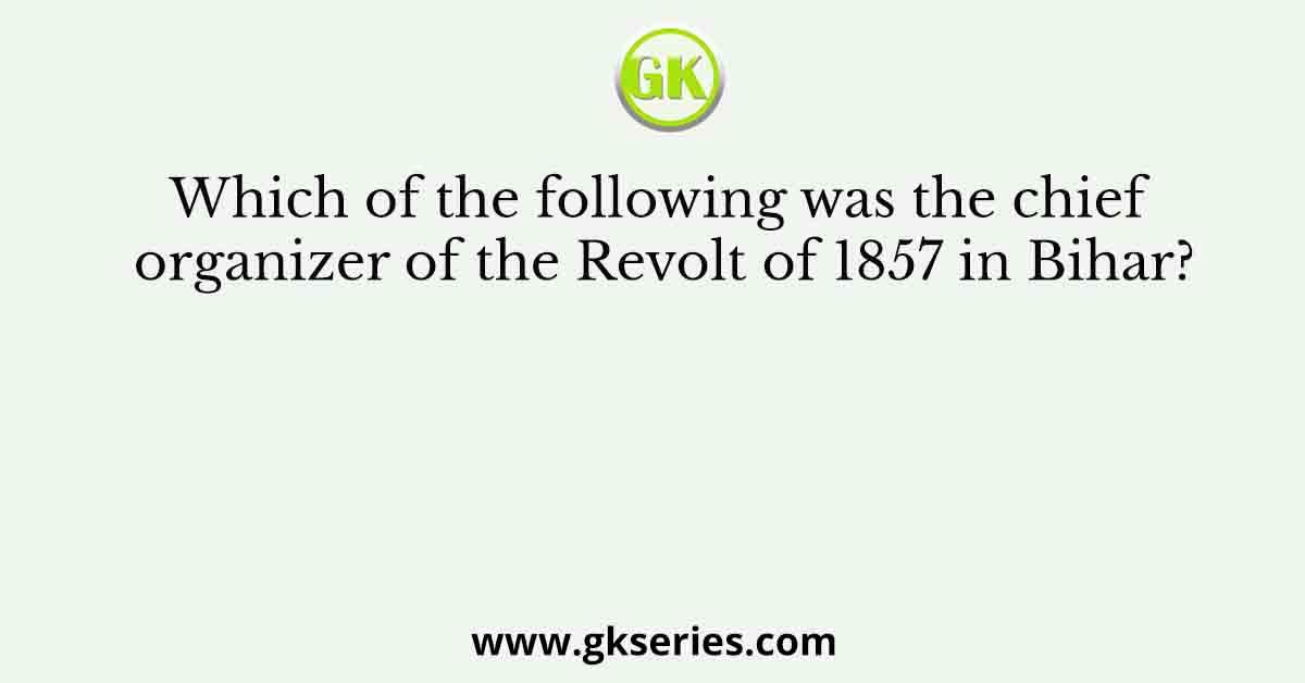 Explanation: The chief organizer of the Revolt of 1857 in Bihar was (c) Kunwar Singh.