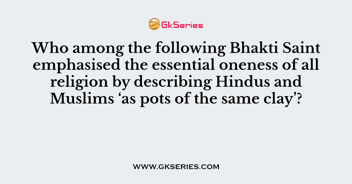 Q. Who among the following Bhakti Saint emphasised the essential oneness of all religion by describing Hindus and Muslims ‘as pots of the same clay’?