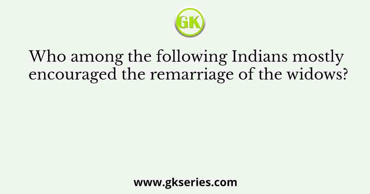 Q. Who among the following Indians mostly encouraged the remarriage of the widows?