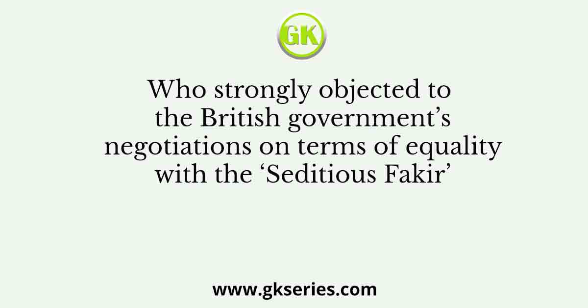 Who strongly objected to the British government’s negotiations on terms of equality with the ‘Seditious Fakir’