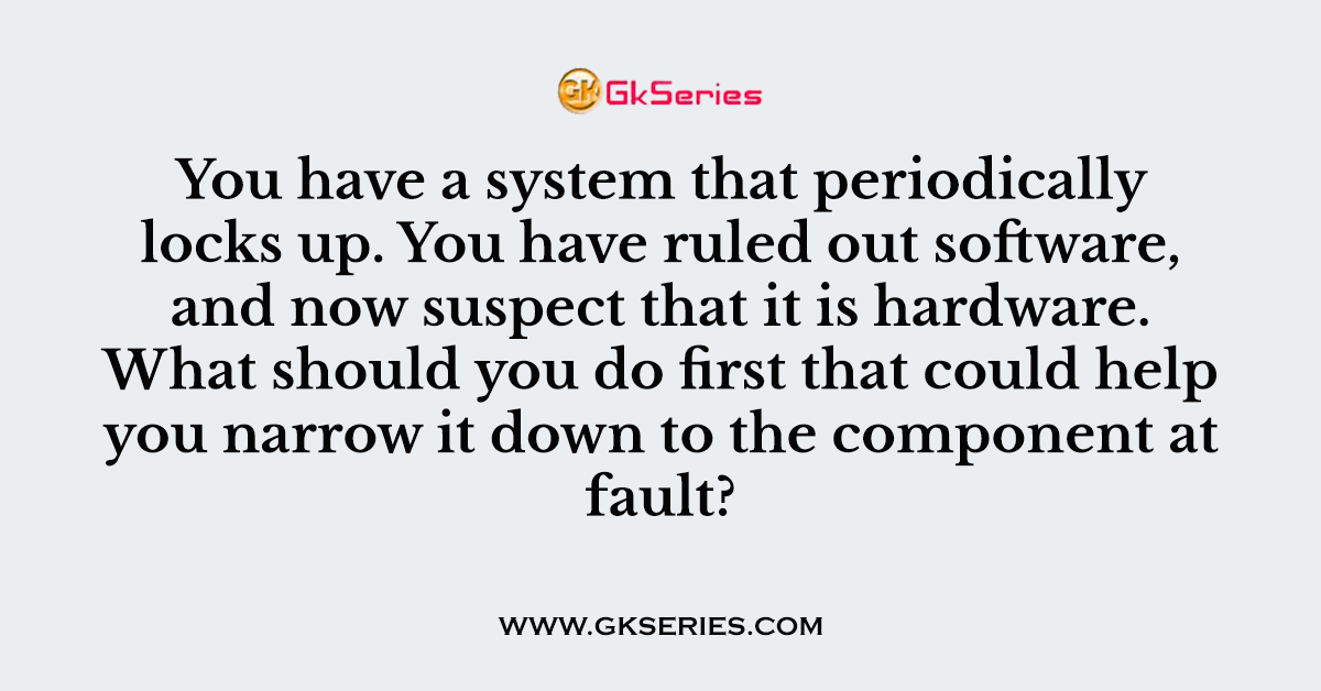 Q. You have a system that periodically locks up. You have ruled out software, and now suspect that it is hardware. What should you do first that could help you narrow it down to the component at fault?